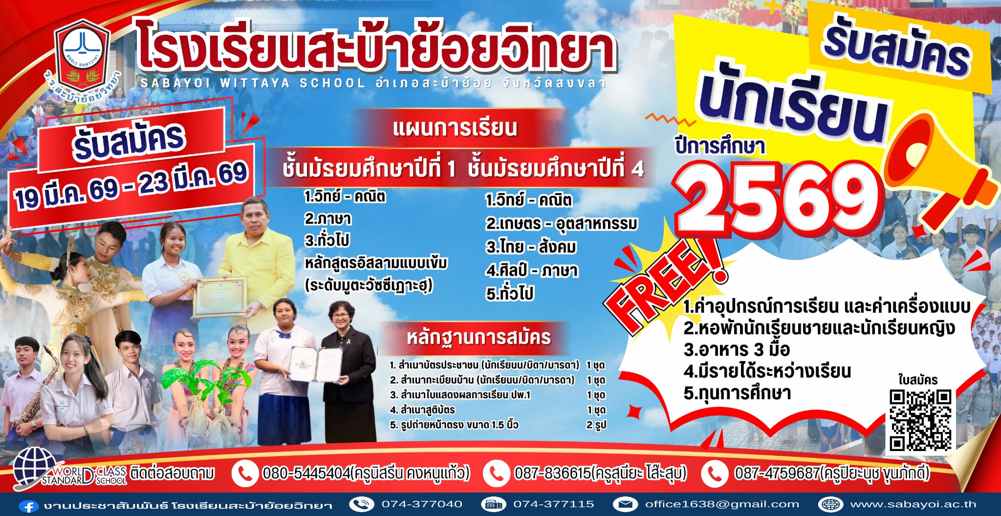 🌟 สะบ้าย้อยวิทยา มุ่งพัฒนาผู้เรียนสู่ความเป็นเลิศทางวิชาการ ควบคู่คุณธรรม 🌟